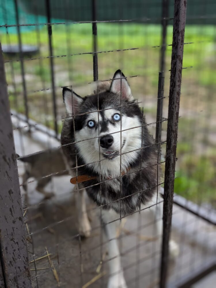 Aiza ist 4 Jahre alt; sie ist seit 1 Jahr in diesen Käfig eingesperrt - niemand kümmert sich um sie. Aiza darf nicht raus, weil sie keine Katzen mag und im Garten Vögeln hinterherjagt. Aiza hat leider dasselbe Schicksal wie so viele Huskies/Husky-Mixes -> als Welpe adoptiert und dann eingesperrt werden, wenn diese Hunde rassetypisch mehr Aktivität und Bewegung benötigen und auch etwas Jagdtrieb haben. Wir müssen ihr helfen, wir müssen sie befreien!