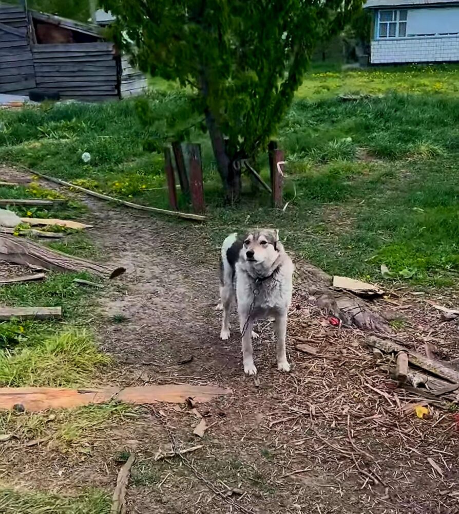 Bis Kriegsbeginn lebte Glory ein relativ normales Hundeleben auf dem Land. Ihr Frauchen hatte sie schon als Junghund. Als sie ihren Mann, der immer mehr trank, im Frühjahr 2022 verließ, konnte sie Glory nicht mitnehmen. Ab nun musste die sanfte Hündin an der Kette leben (siehe letztes Foto). Als ihr ehemaliges Frauchen erfuhr, dass Glory geschlagen wird, bat sie Yana um Hilfe. Diese tolle, junge Frau, die von März 22 bis März 24 in Oberhausen/NRW wohnte, hat in der Nähe von Kiew ein Tierheim aufgebaut und kümmert sich aufopferungsvoll und engagiert um Hunde und Katzen. Sie pflegt, trainiert und vermittelt.
