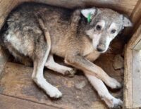 Keno ist ein schon älterer Rüde, der bei unserem Besuch nur in seiner Hütte lag. Er war unsicher uns gegenüber, aber keineswegs panisch. Er wirkt alt und abgekämpft und seine Augen sind entzündet. Wir konnten ihn in der Hütte anfassen und streicheln, dabei zeigte er kein Abwehrverhalten. Mit den anderen Hunden in seinem Kennel schien er gut zurecht zu kommen. Wir wünschen uns für ihn einen erfahrenen Platz, wo er noch einmal die schönen Seiten des Lebens erfahren darf.