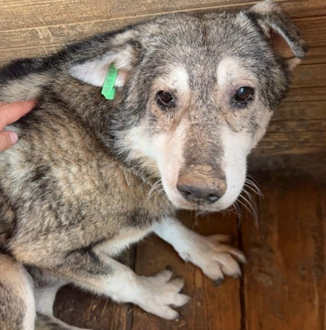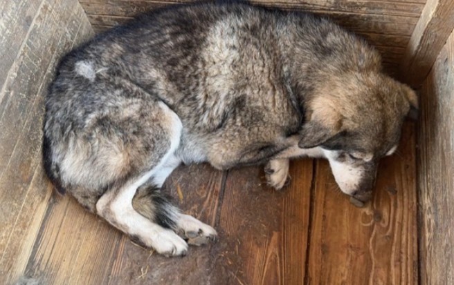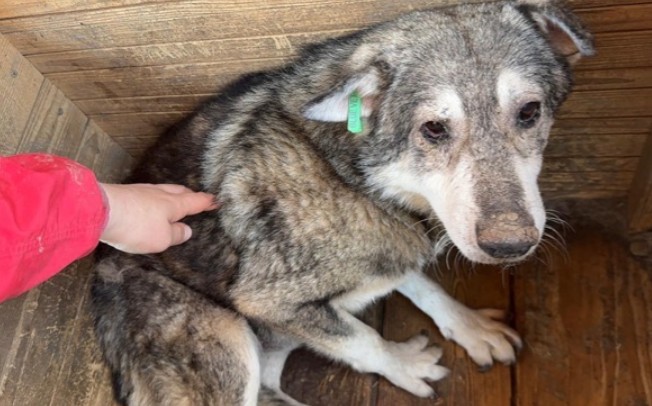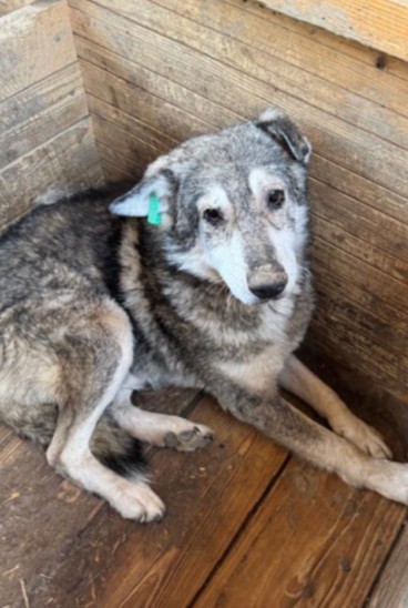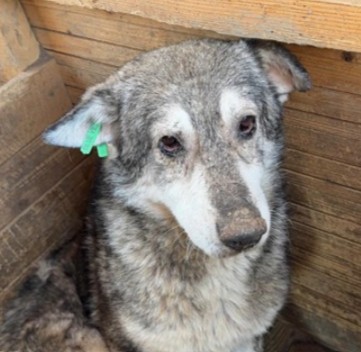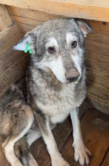 Keno ist ein schon älterer Rüde, der bei unserem Besuch nur in seiner Hütte lag. Er war unsicher uns gegenüber, aber keineswegs panisch. Er wirkt alt und abgekämpft und seine Augen sind entzündet. Wir konnten ihn in der Hütte anfassen und streicheln, dabei zeigte er kein Abwehrverhalten. Mit den anderen Hunden in seinem Kennel schien er gut zurecht zu kommen. Wir wünschen uns für ihn einen erfahrenen Platz, wo er noch einmal die schönen Seiten des Lebens erfahren darf.