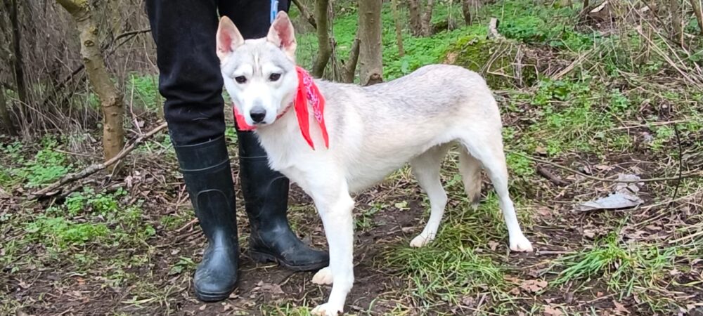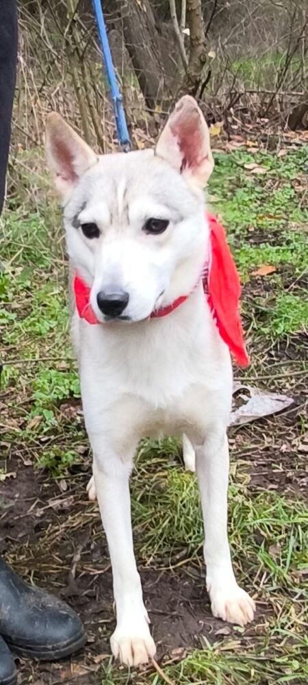 ANDJY ist eine 1 Jahr/2 Monate alte Husky-Mischlingshündin, geboren am 23.10.2024, mit einer Schulterhöhe von 51 cm.